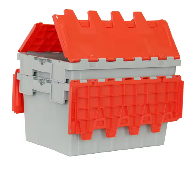 This large heavy-duty plastic tote box is an industrial-grade storage and logistics essential, designed for durable performance in distribution, moving, and warehouse operations.