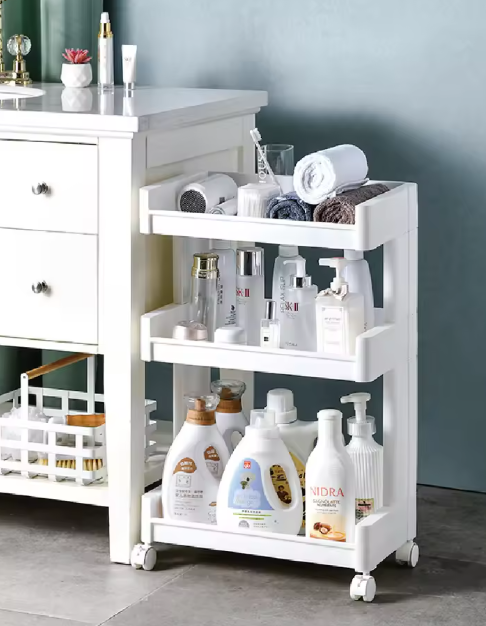 Equipped with smooth-rolling wheels (where applicable) for easy mobility, it allows effortless transportation of items between rooms. Its sturdy construction ensures reliable load-bearing, and the easy-to-clean surface simplifies maintenance. Ideal for organizing kitchen condiments, office stationery, bathroom toiletries, or books, it keeps spaces tidy and essentials within reach.