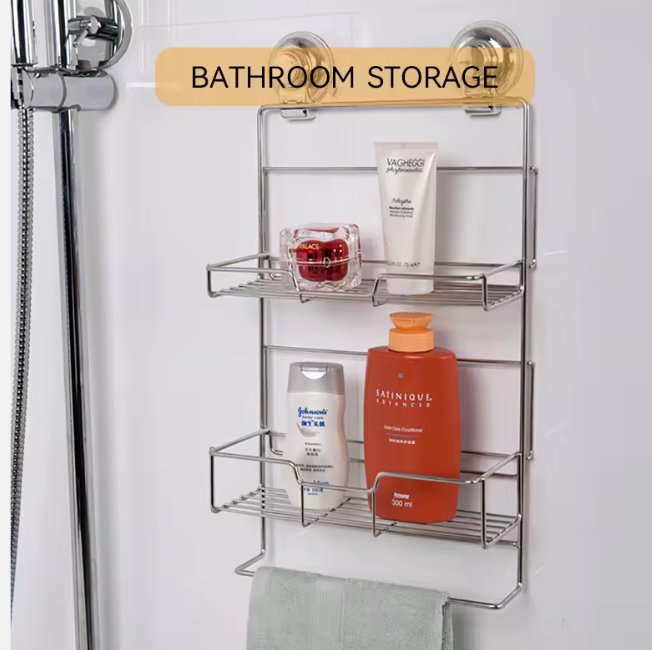 Crafted from solid stainless steel, it is rust-resistant and corrosion-proof, featuring stable load-bearing capacity and no easy deformation. It remains sleek and intact even with long-term use. The double-layer design expands storage space, neatly accommodating kitchen condiments, tableware, or bathroom toiletries and shower accessories—freeing corners from clutter.