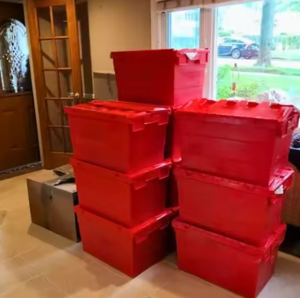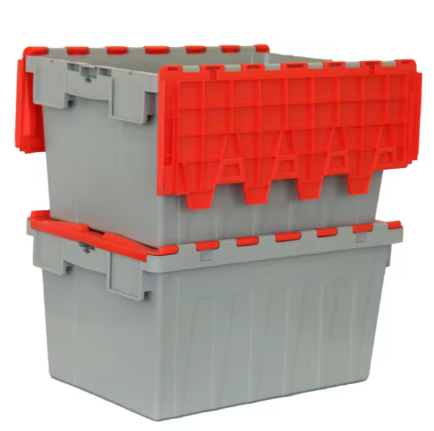 This large heavy-duty plastic tote box is an industrial-grade storage and logistics essential, designed for durable performance in distribution, moving, and warehouse operations.
