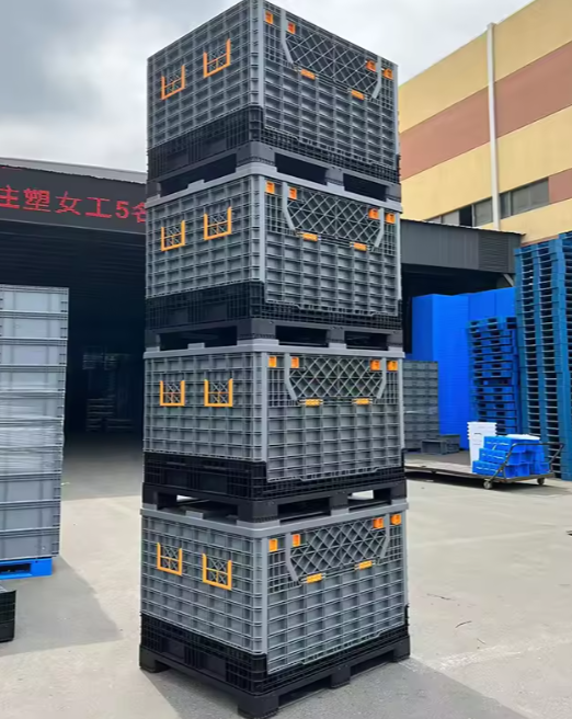 This 1200*1000 heavy-duty pallet box is crafted from premium HDPE, ideal for industrial bulk storage and logistics.